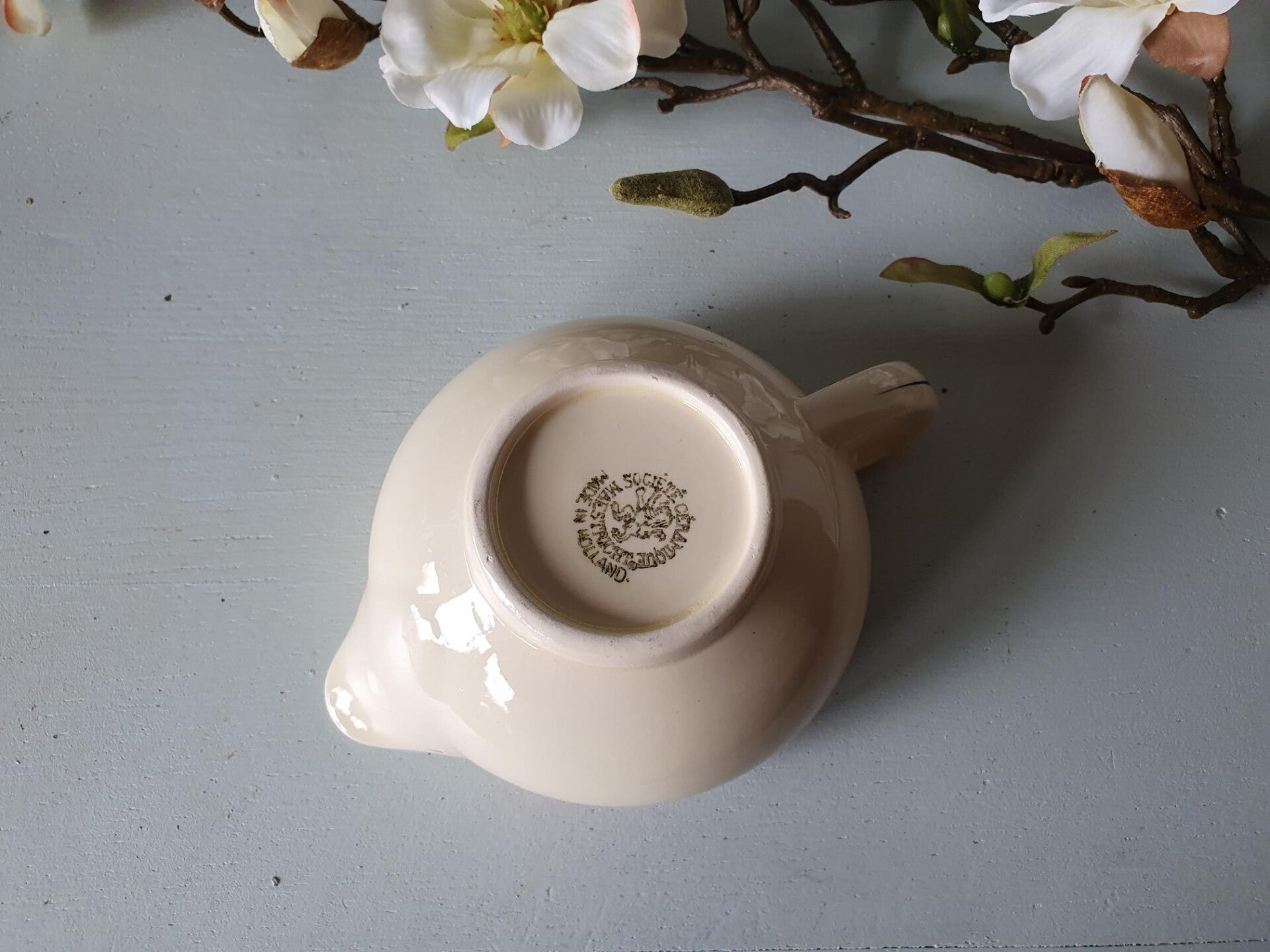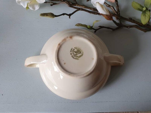 - Suikerpot Ø9 cm, H10 cm (ander model, zelfde bies, slijtage handvat)