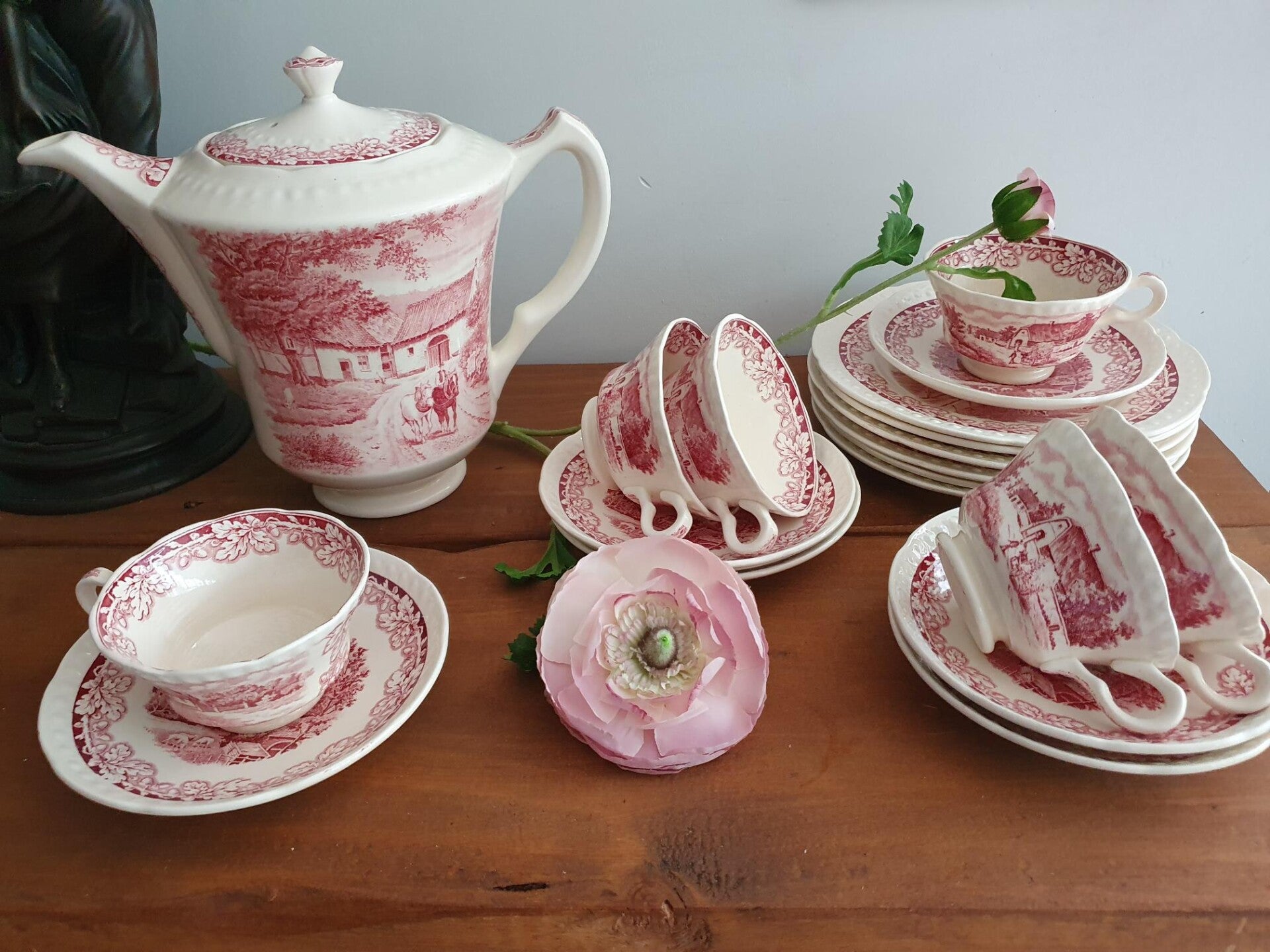 Ontbijtservies/ koffieservies Boerenhoeve rood - Société Céramique Maestricht