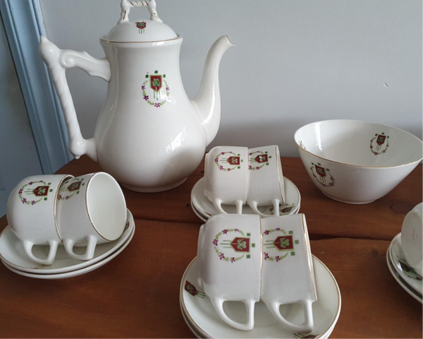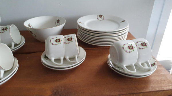 Ontbijtservies 10 persoons decor 1076, guirlande klavertje 4, glad Petrus Regout