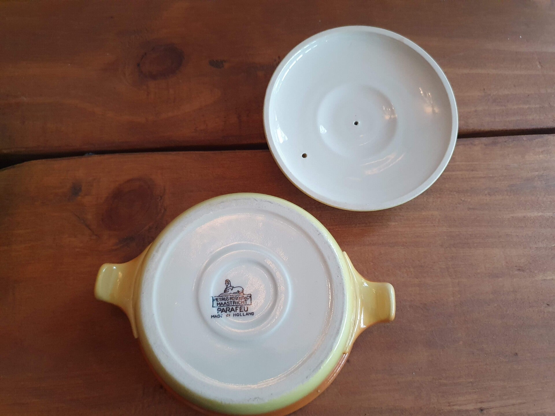 Parafeu - Petrus Regout - Bruin pannetje/ kom met deksel