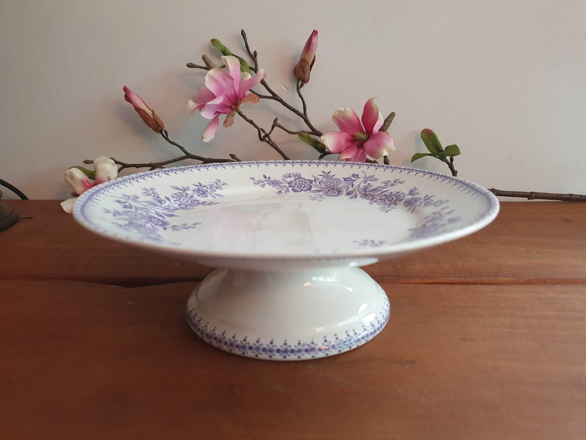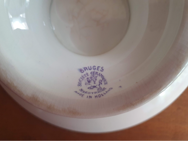 Tazza/ Schaal op voet - Société Céramique Maestricht - Decor Bruges lila