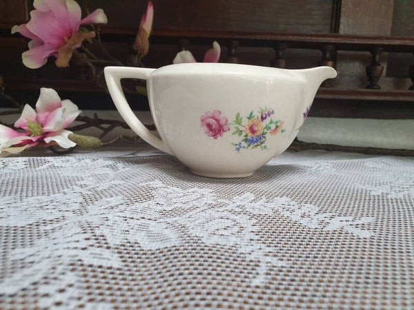 Melkkan Petrus Regout - Model Perle, decor paarse Iris/ Tulp/ Lis