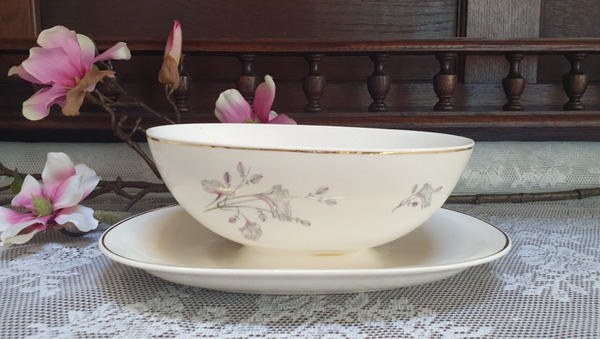 Sauskom - Petrus Regout - Decor Grijze bladeren met rose accenten