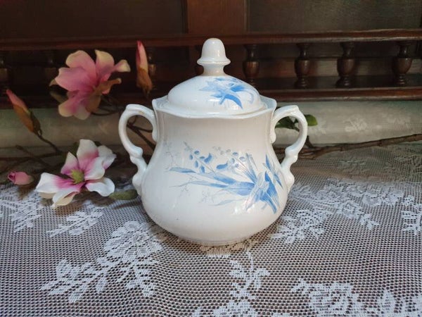 Suikerpot - Petrus Regout - blauw plant/bloem belletjes