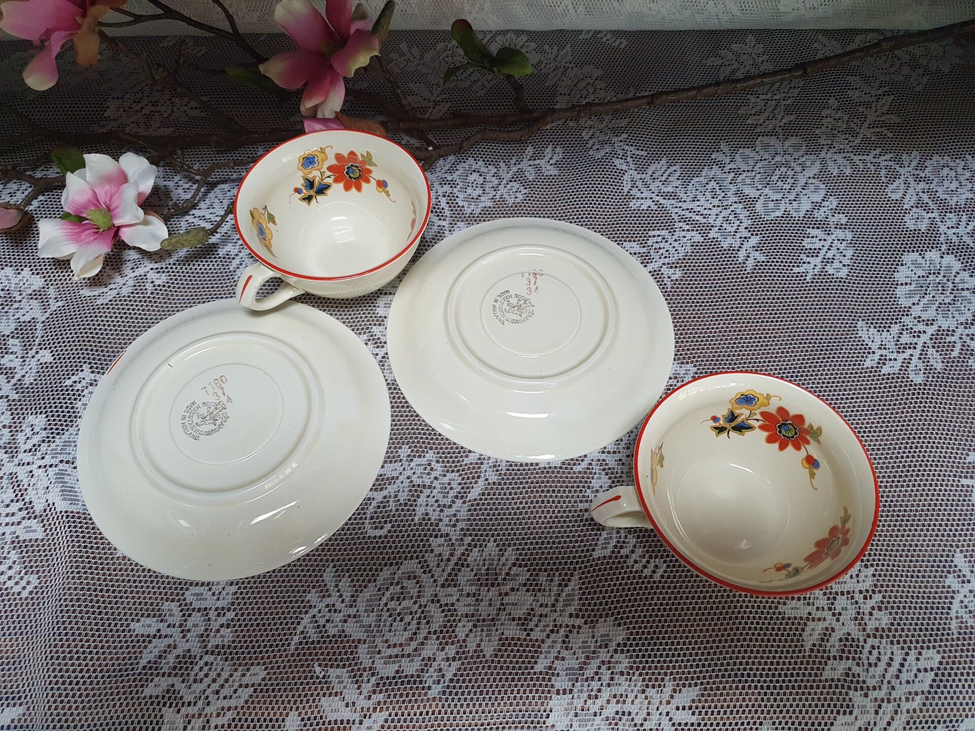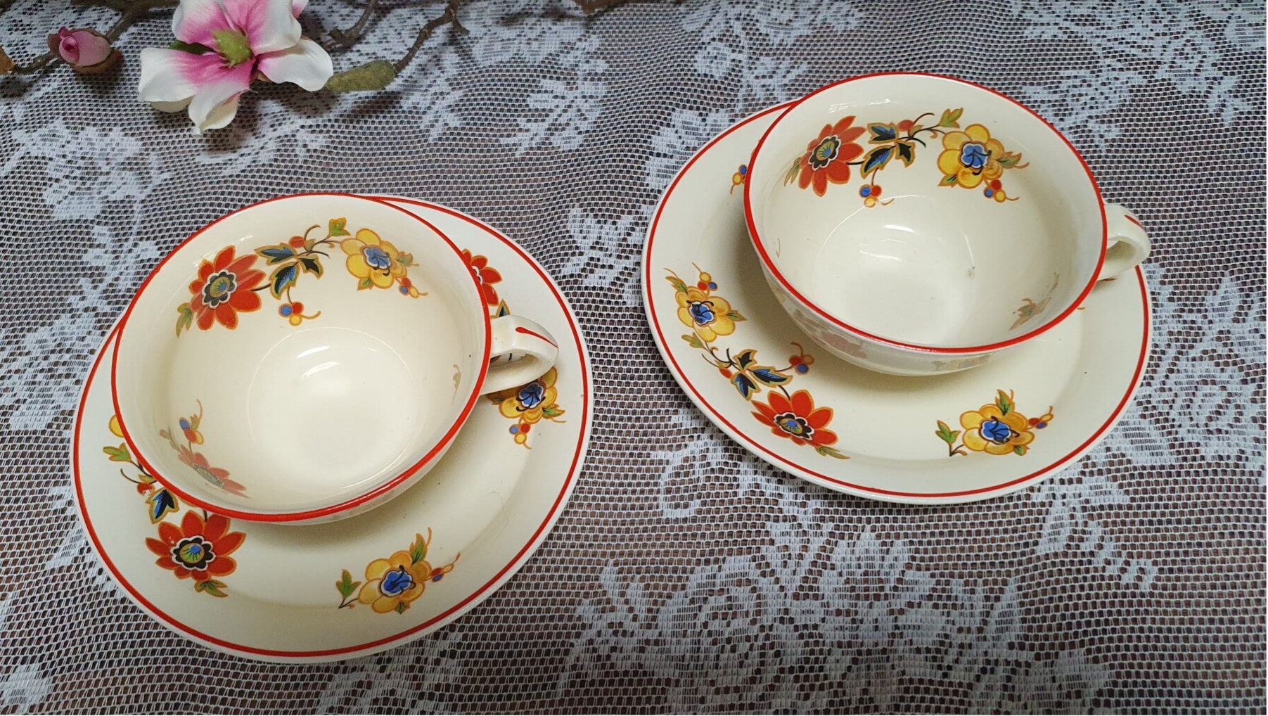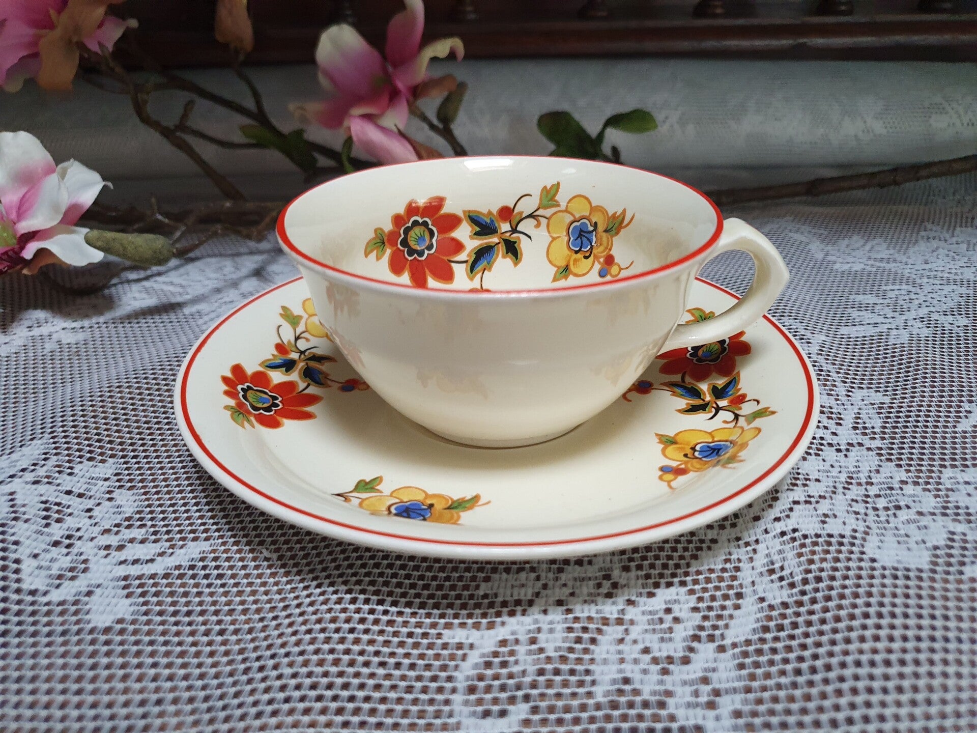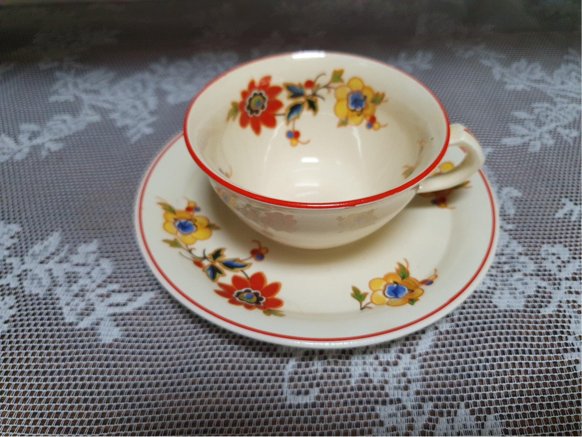 Kop & Schotel - Société Céramique Maastricht - Decor 7180 Oranje/ gele bloemen