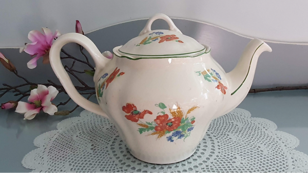 Theepot - Société Céramique Maestricht - Decor 1957A klaproos (groene filet).