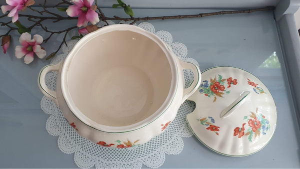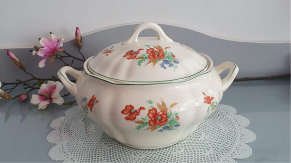 Soepterrine - Société Céramique Maestricht - Decor 1957A klaproos (groene filet).
