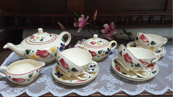 Theeservies 6 persoons - Boerenbont decor 417 crème - Société Céramique Maastricht
