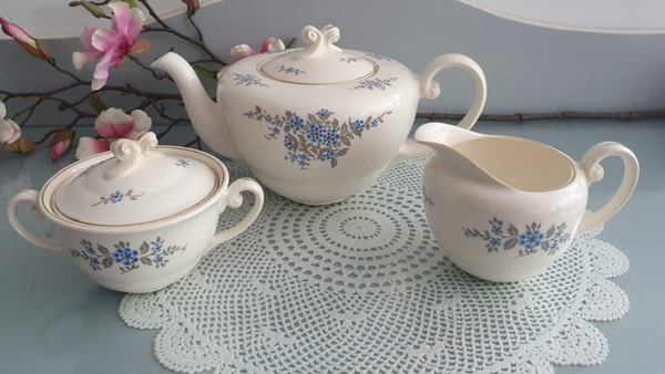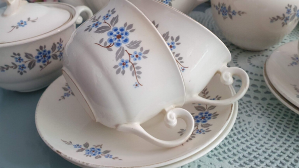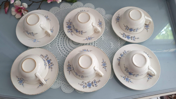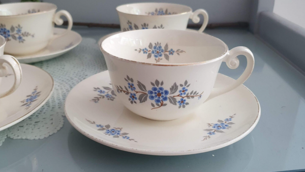 Theeservies 6 persoons Boudewijn - Petrus Regout - Marianne decor 823 - Vergeet me nietje