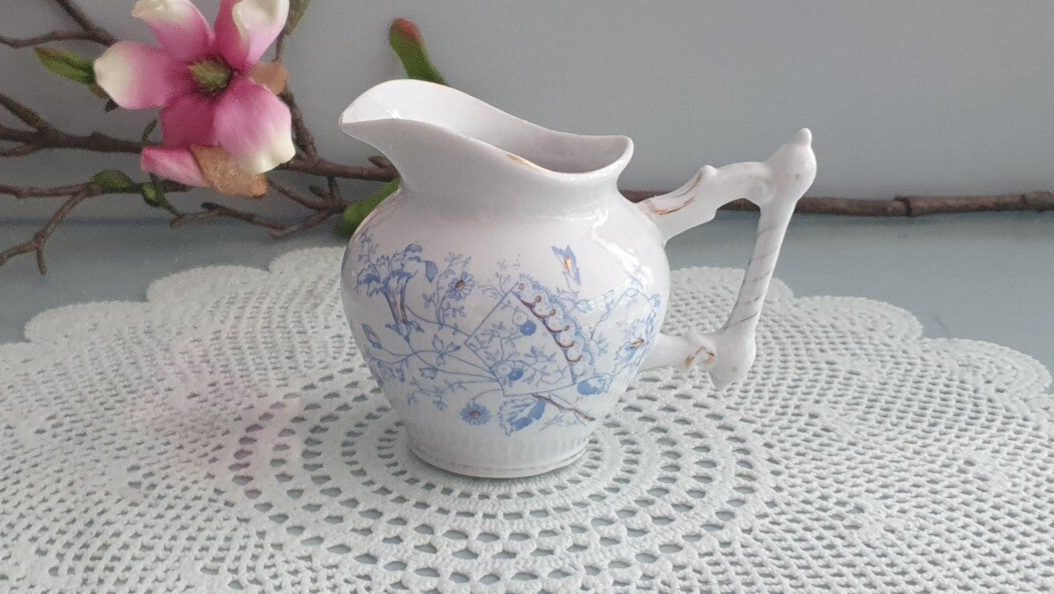 Melkkannetje - Mosa - decor 268 Licht blauw bloem/ waaier