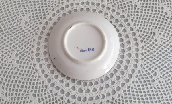 Mini kop & Schotel zonder oor, KØ6 cm, H3,5 cm, SØ9,5 cm, vervaardigd omstreeks 1900.