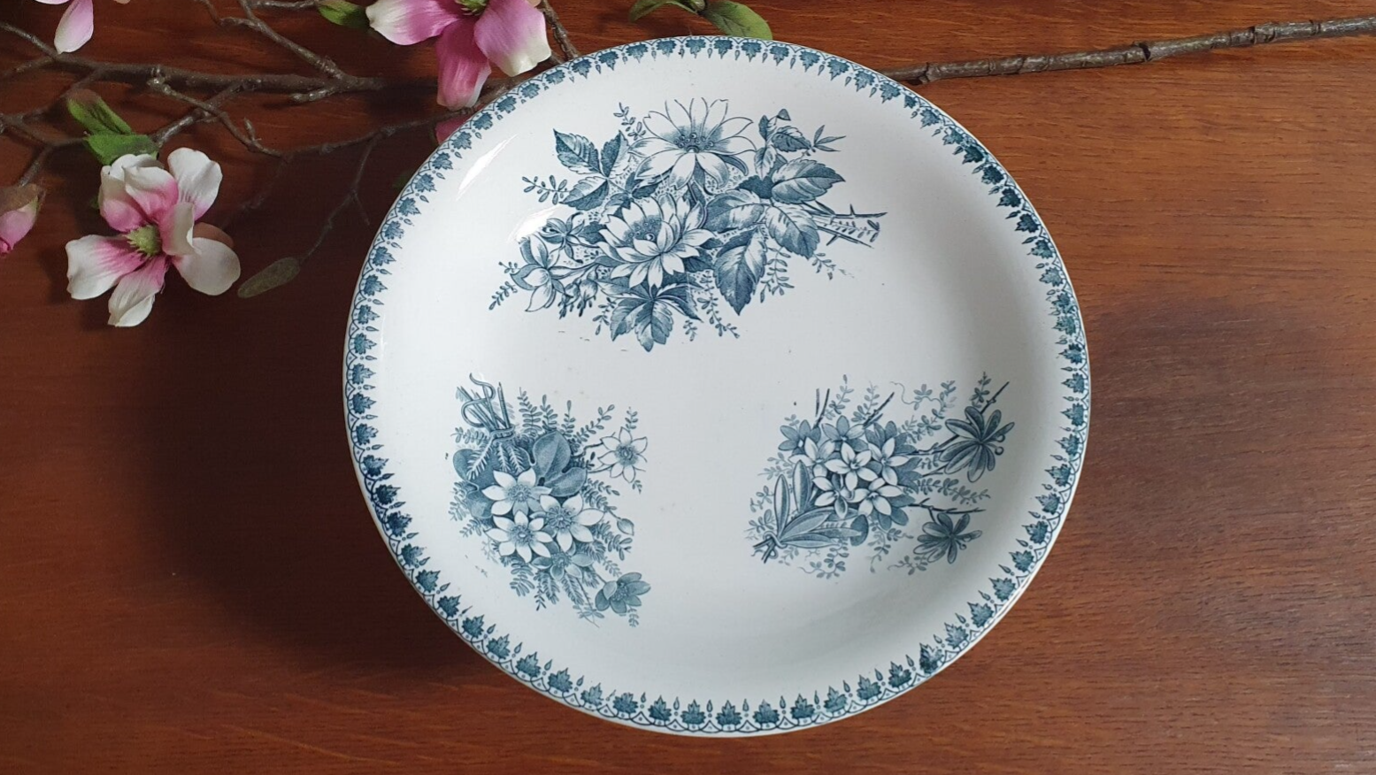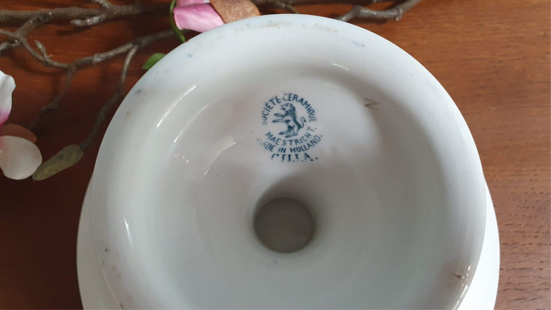 Schaal op voet/ Tazza - Société Céramique Maastricht - Decor Cilla - blauw